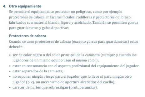 Empezamos por la Regla 4, cuando al lector ocasional de la Reglas de la FIFA le sorprende eso de los "protectores de cabeza". Jamás podría pensar la historia que se esconde detrás de esta aparentemente inofensiva prensa.